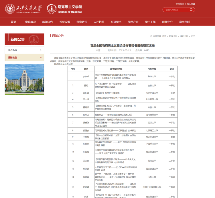 首届全国马克思主义理论经典读书节自通知发布后,得到了全国各高校学生的热烈响应,累计收到127所高校学生的712篇投稿。经主办方组织专家两轮匿名评审,共评选出获奖读书报告100篇,其中一等奖10篇,二等奖20篇,三等奖30篇,优秀奖40篇。
