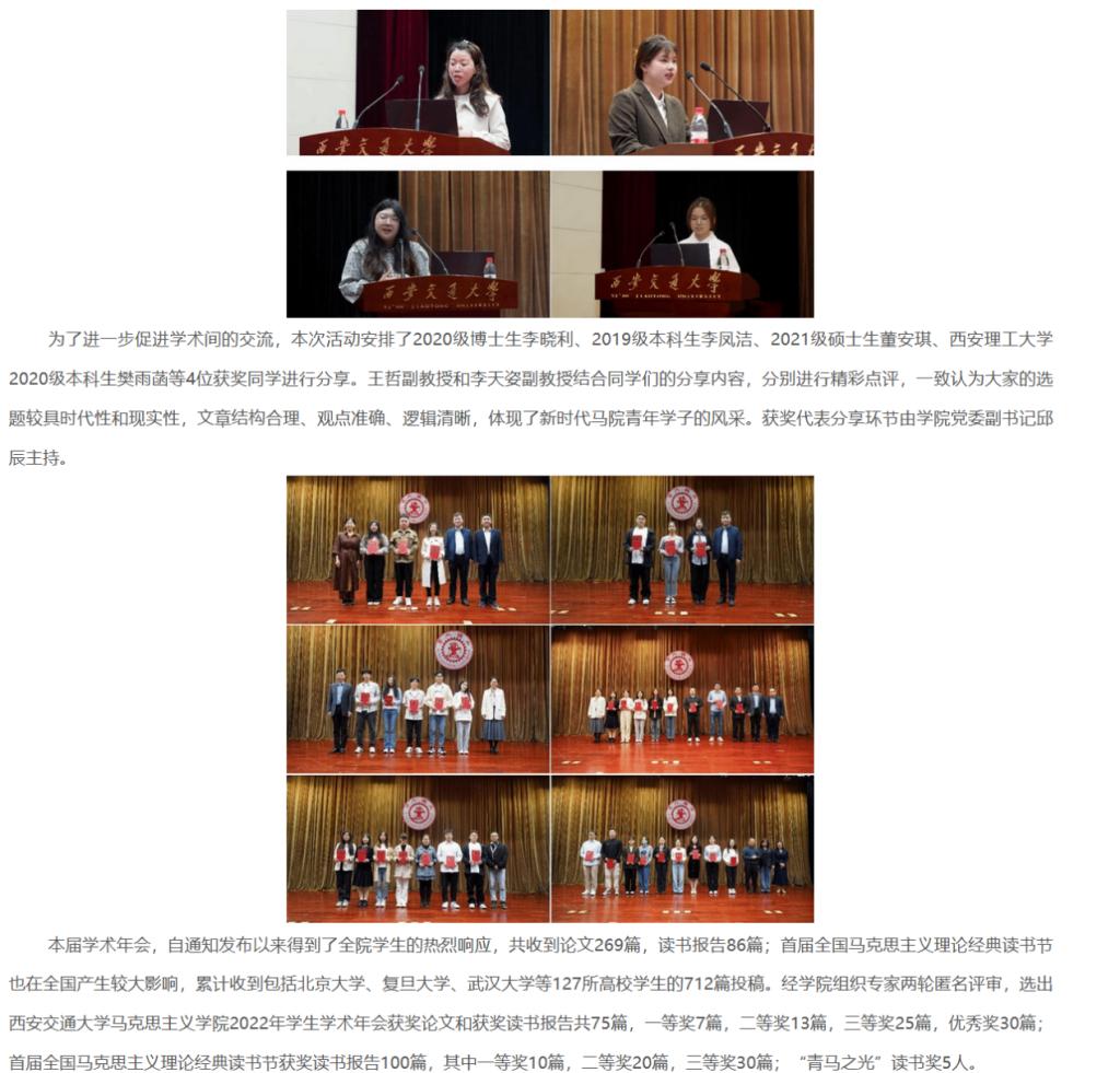 在兴庆校区主楼多功能报告厅隆重举行2022年学生学术年会暨首届全国马克思主义理论经典读书节活动,对在首届全国马克思主义理论经典读书节活动种获奖的同学进行表彰,还特别邀请有关领域专家做精彩学术报告,邀请获奖同学进行现场分享。