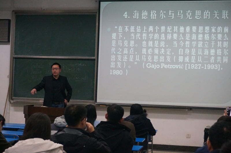 讲座随后介绍了海德格尔和马克思的思想关联。从海德格尔接触和谈论马克思思想的事实出发,结合对海德格尔具体文本的分析,指出马克思在海德格尔思想道路上扮演了这样一种角色:一方面,马克思在海德格尔思想道路上的作用不能被单纯界定为积极或消极;另一方面,由于海德格尔从未给与马克思以专题的讨论或系统的诠释,使得我们不得不认定,马克思对于海德格尔本人思想的影响较之其他一些人的影响是有限的。由此出发,讲座提出了进一步研究“海德格尔和马克思”这一主题的若干问题。
