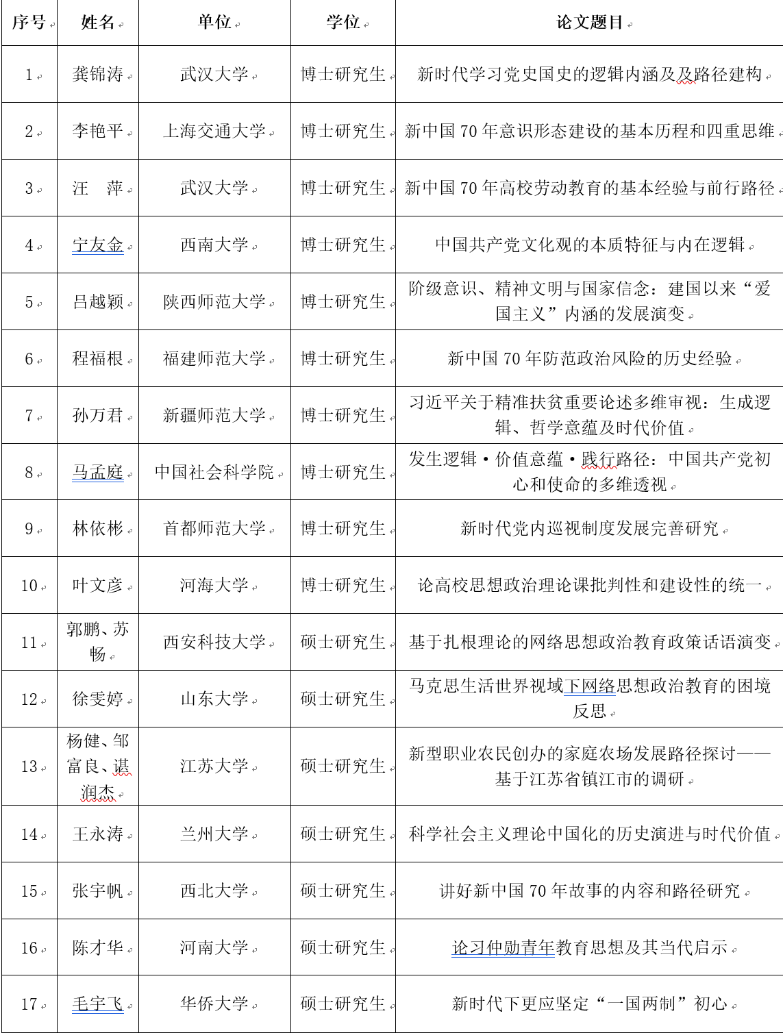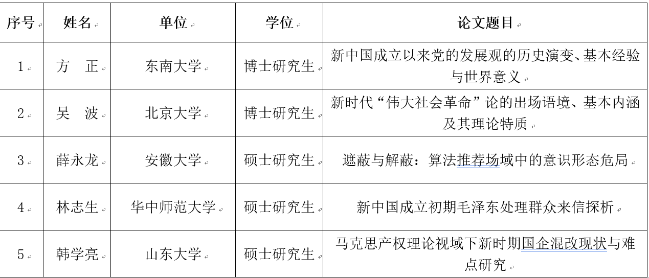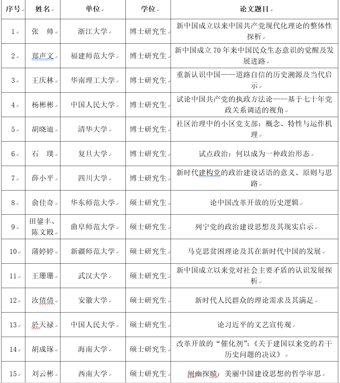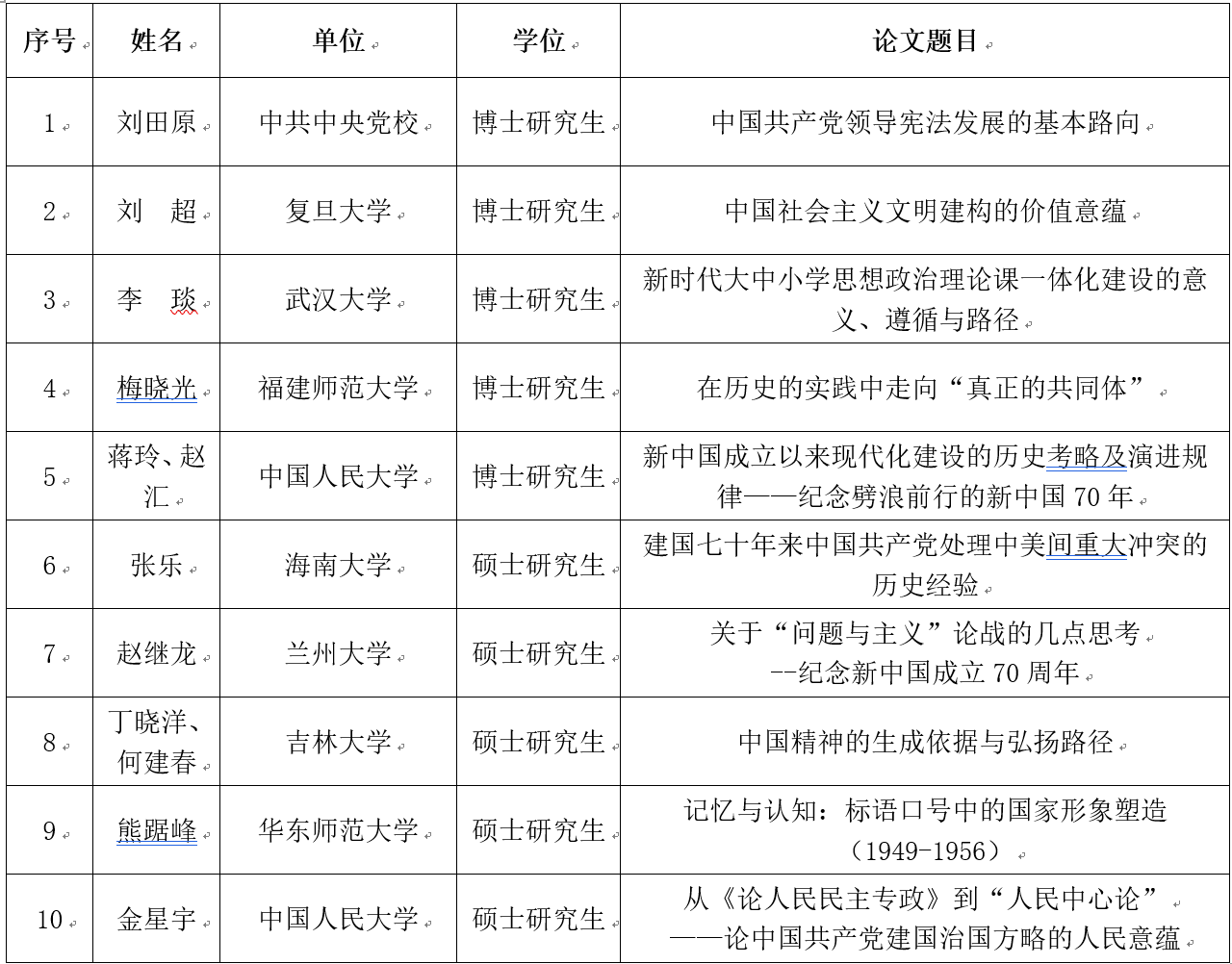 “新中国70年与当代中国马克思主义”全国研究生学术论坛获奖论文名单公示