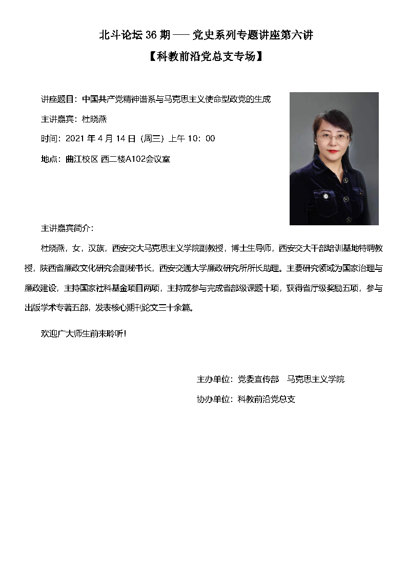 【讲座预告】北斗论坛36期----党史系列专题讲座第六讲【科教前沿党总支专场】