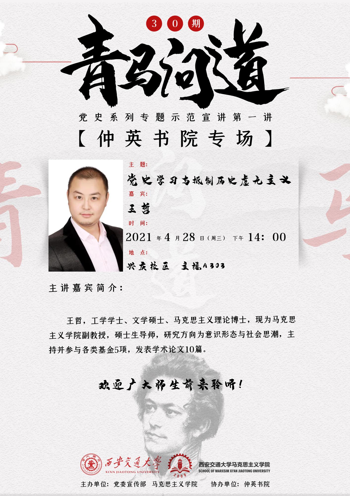 【讲座预告】青马问道30期----党史系列专题示范宣讲第一讲【仲英书院专场】