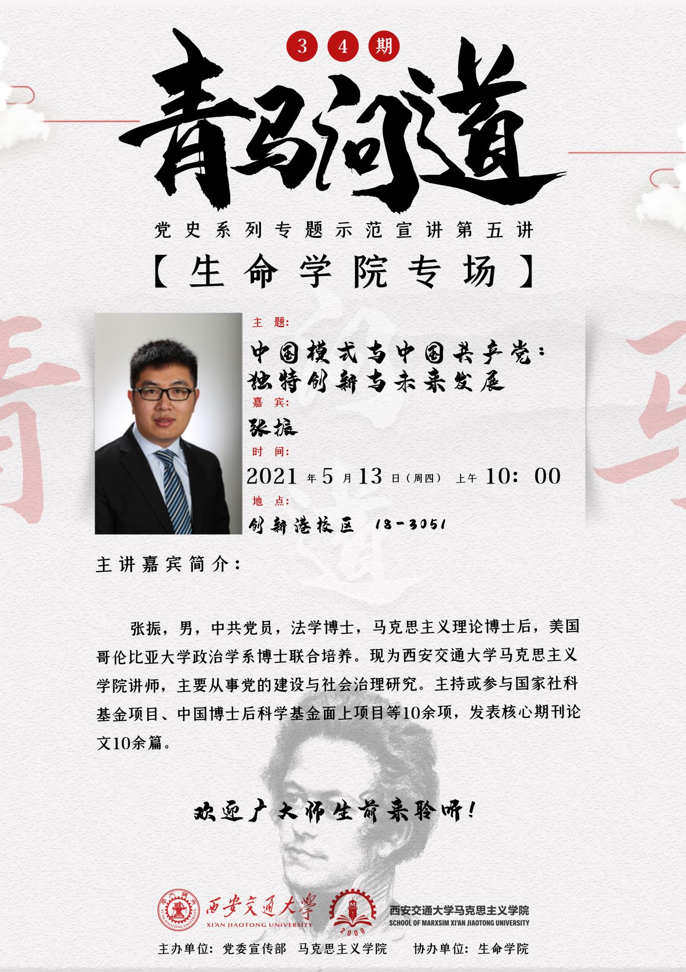 【讲座预告】青马问道34期----党史系列专题示范宣讲第五讲【生命学院专场】