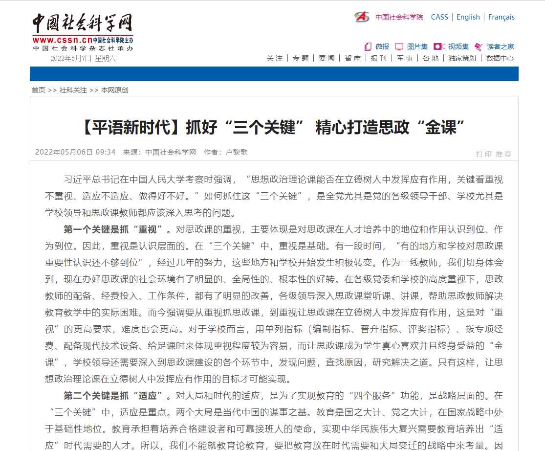 习近平总书记在中国人民大学考察时强调,“思想政治理论课能否在立德树人中发挥应有作用,关键看重视不重视、适应不适应、做得好不好。”如何抓住这“三个关键”,是全党尤其是党的各级领导干部、学校尤其是学校领导和思政课教师都应该深入思考的问题。