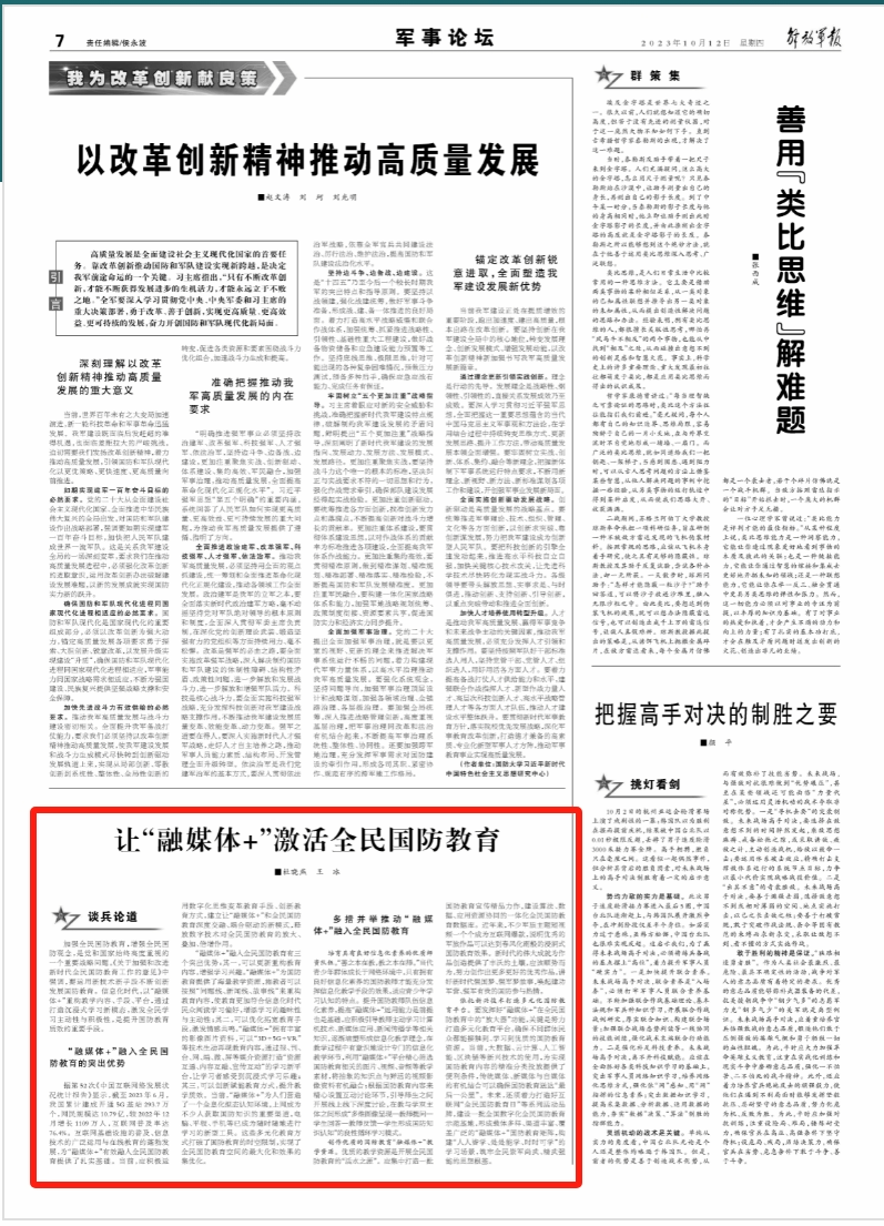 原文刊载于《解放军报》2023年10月12日第07版:军事论坛